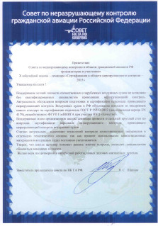 Сертификация персонала неразрушающего контроля в области гражданской авиации. Одобрение органов по сертификации персонала НК Советом НК ГА РФ.